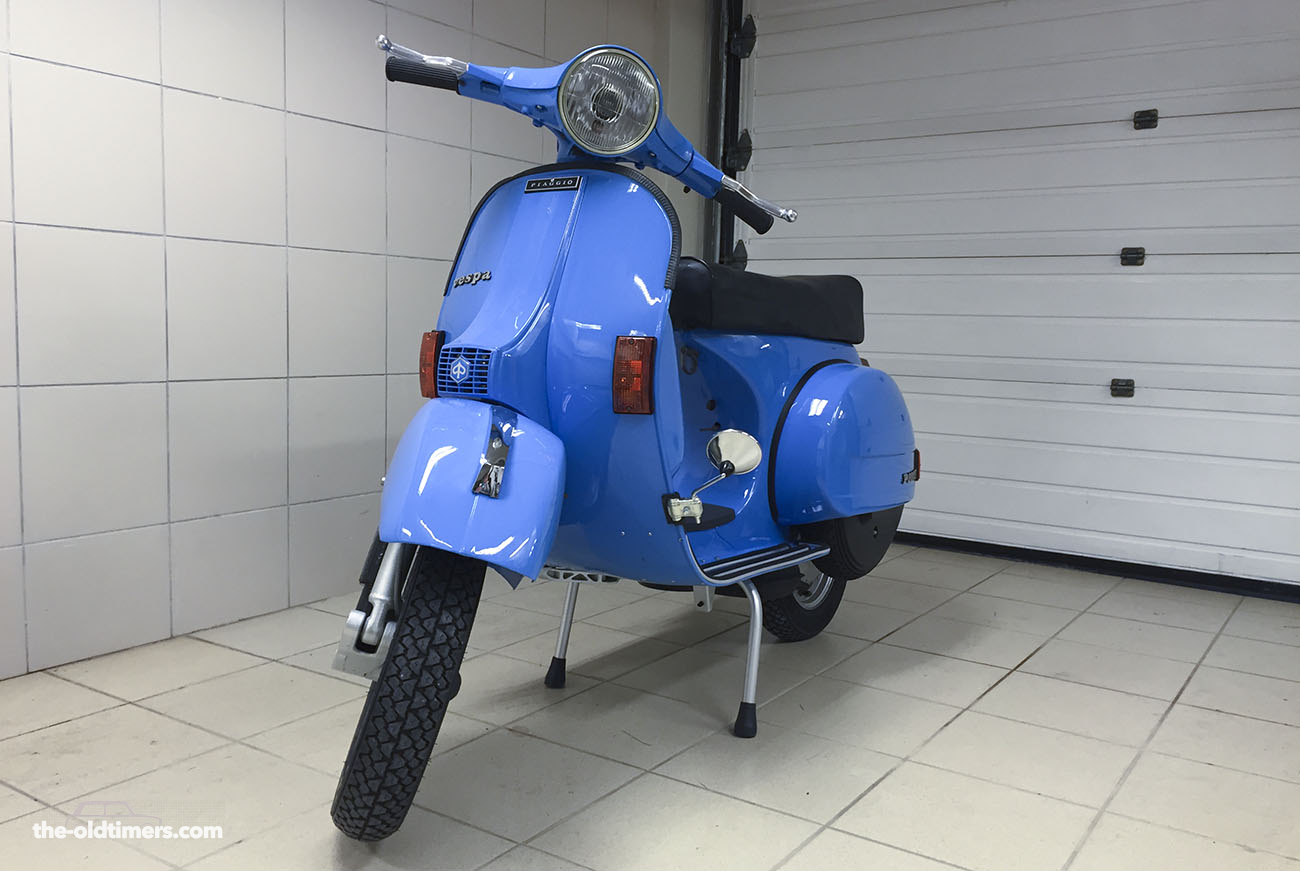 This one is a Vespa P200E from the year 1983. When we got it the many years that was abandoned had took its toll at this poor Vespa. After a lot of work we managed to fix the body and rust issues. The original color was white but we wanted something more funky so we decided to paint it this light blue (which was a original Vespa color code from that era). We also serviced the engine which was already, almost perfect and we renew all the electrics. P200E has not an electric starter but that was never a problem for us, since it always fired up at the first kick, even after many days of not use.If you are a fun of Italian style you have to love Vespas. They are not only a style icon, they are a practical way to move around the city.